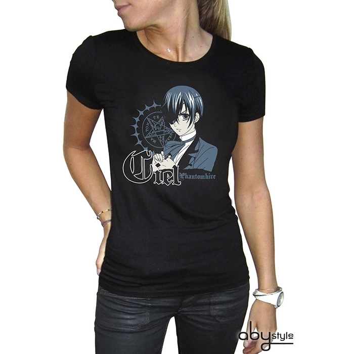 Entführen Sie die aristokratische Erbin des verfluchten Geschlechts der Phantomhive: Lernen Sie Ciel, die Hauptfigur des Mangas Black Butler, auf diesem T-Shirt von ABYstyle kennen!