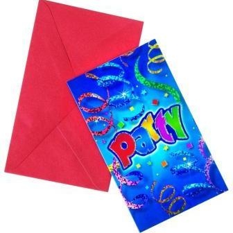 Luftschlangenmotiv - Einladungskarten mit Umschlag prismatisch (6 Stück)