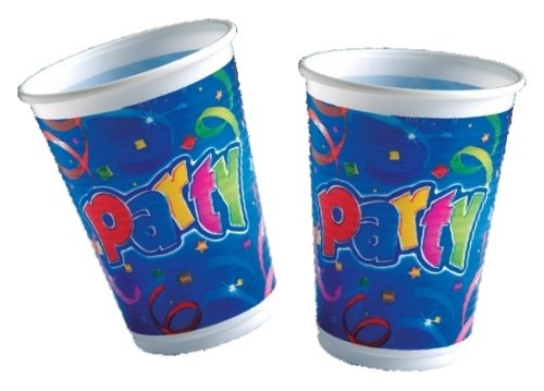 Luftschlangenmotiv - Kunststoffbecher 200ml (8 Stück)
