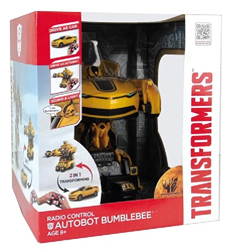 "Transformers" Bumblebee Autobot, 1:16, fließende Transformation per Fernbedienung, Licht & Sound, Triband 27 MHz, Batterien enthalten Maßstab 1:16 Fahrzeug ca. 290 x 130 x 82 mm; Roboter ca. 185 x 180 x 240 mm verwandelt sich per Fernbedienung vom Fahrzeug zum Roboter mit Licht & Sound ("I am Bumblebee") inkl. Zubehör (Kanone & Schild) stoßgesicherte Karosserie volle Fahr- & Lenkfunktion in beiden Modi Triband 27MHz, Triband ermöglicht das gleichzeitige Fahren von drei Fahrzeugen ohne Funkstörung Batterien (Fahrzeug: 4x 1,5V LR6 Sender: 1x 9V 6LR61) enthalten bekannt aus dem Kinofilm Transformers 4 Hol` dir deinen verwandelbaren Bumblebee direkt von der Transformers 4 Kinoleinwand zu dir nach Hause und zieh` ein in die große Schlacht gegen die Decepticons. Bumblebee mag zwar nicht der größte Autobot sein, doch er hat mehr Mut als alle anderen Kämpfer von Cybertron. Der kampferprobte Autobot war der erste, der ein Bündnis mit einem Menschen eingegangen ist. Als vertrauenswürdigster Untertan von Optimus Prime tut er alles, was in seiner Macht steht, um die Erde und ihre Bewohner zu schützen. Per Fernbedienung verwandelt er sich vom Fahrzeug zum Roboter, genauso wie im Kinofilm. Geliefert wird er mit Zubehör (Kanone & Schild), welches man im verwandelten Modus verwenden kann.