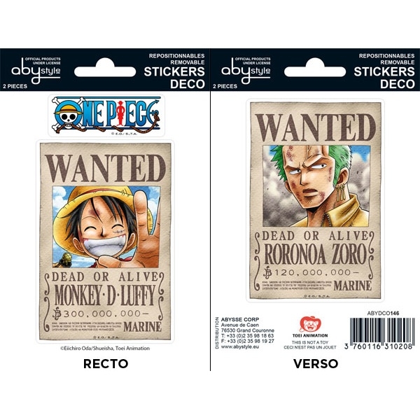 ONE PIECE - Stickers / Aufkleber - 16x11cm/ 2 Blätter - Wanted Luffy/ Zoro  (5 Stück)