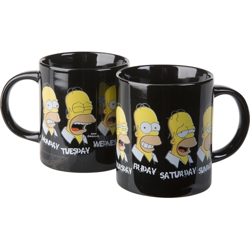 Die perfekte Kaffeetasse für die Arbeit. Homer Simpsons Gesichtsausdruck passend zum jeweiligen Wochentag. Die Woche startet montags entsprechend missgelaunt und richtig gute Laune gibt es dann am Freitag. Nicht nur für Simpsons Fans ein echter Blickfang.