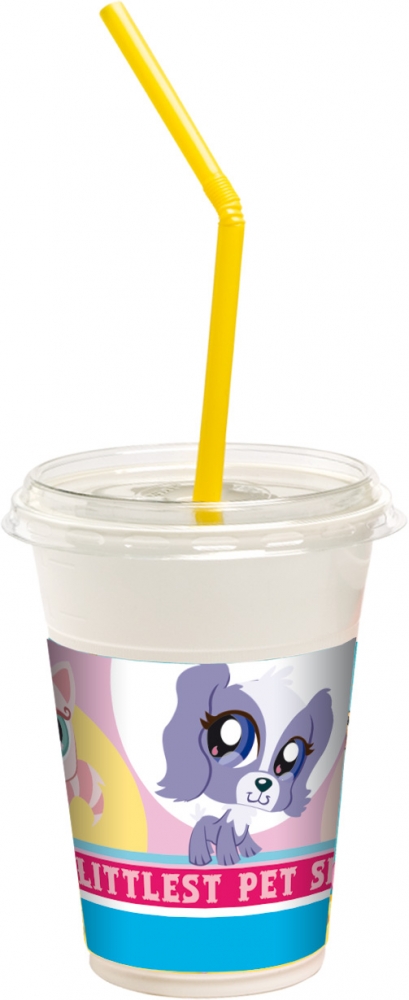 Littlest Pet Shop - Milchshake-Becher Set (12 Becher, 12 Deckel, 12 Trinkhalme)