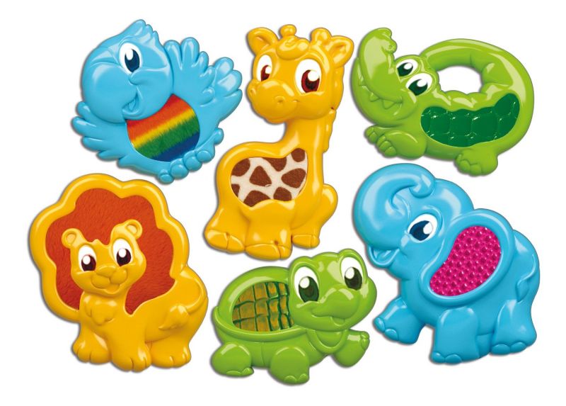 Diese niedlichen Tiere fördern dank ihrer unterschiedlichen Oberflächen und Materialien die sensorische Entwicklung der Babies.